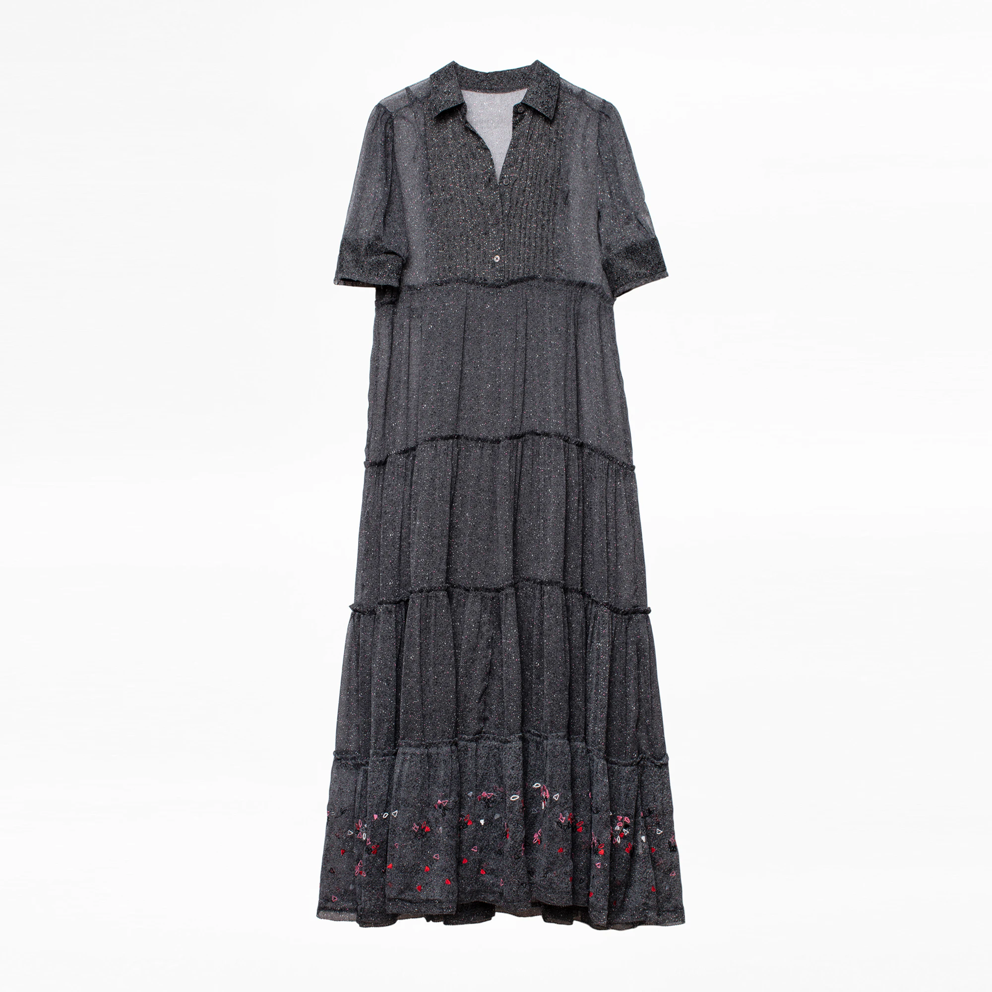 Robe longue femme Zadig&Voltaire, imprimée fleurs, détails agrémentés de borderies et perles.