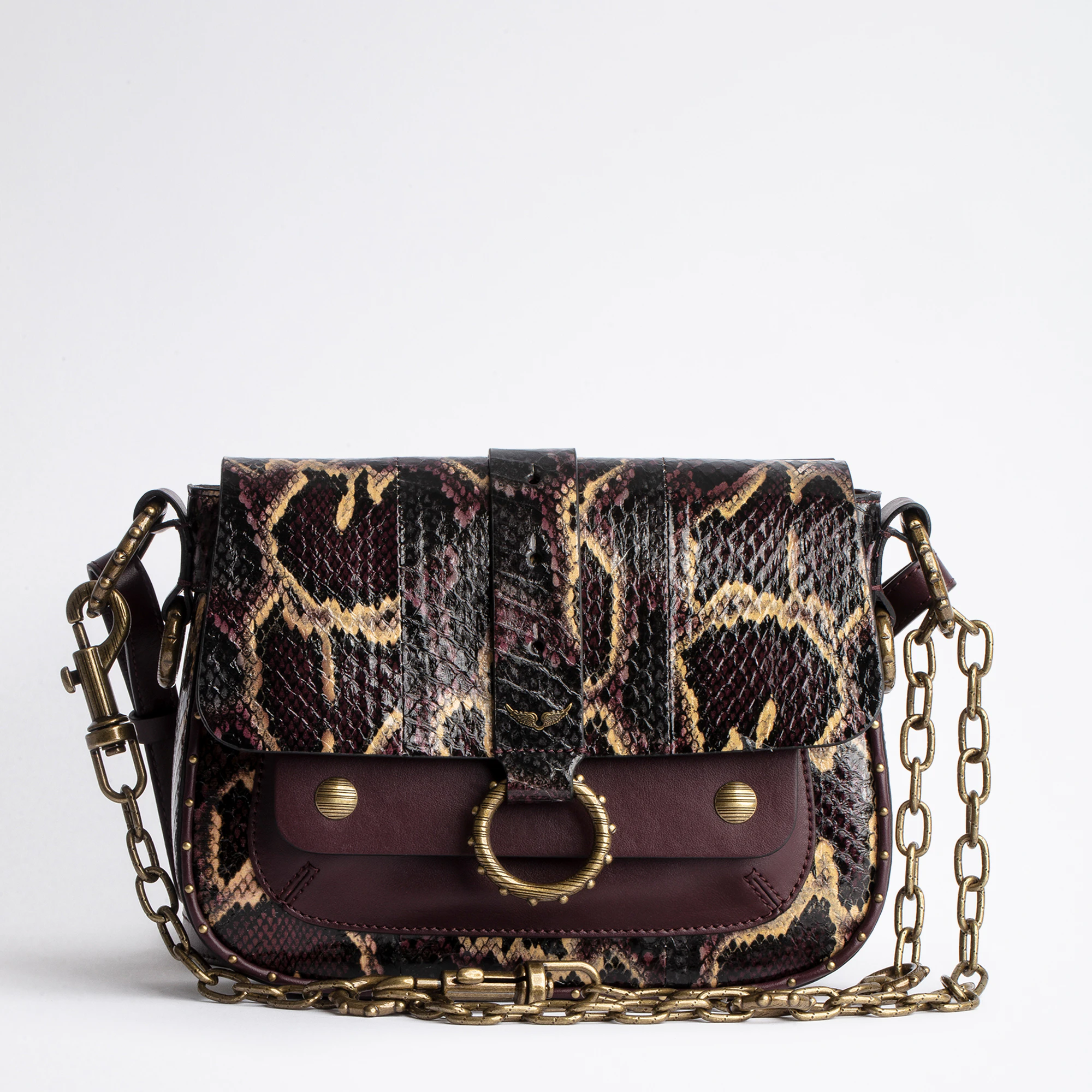 Sac besace femme Zadig&Voltaire, en serpent d’eau imprimé python, agrémenté de clous sur tout le tour et d’un anneau métallique gravé « Kate Loves Zadig&Voltaire ». Porté épaule ou croisé, bandoulière réglable et amovible, chaine amovible à l'aspect vieilli. Poches intérieures plaquées et zippées, et poches extérieures plaquées avant et arrière. L’intérieur du rabat est signé de la main de Kate Moss : son mantra « Live and Love ! Kate ». Cette nouvelle ligne de maroquinerie, imaginée par le top anglais et Cecilia Bönström, insuffle un je-ne-sais-quoi d’élégance parisienne. Modèle fabriqué en Italie.