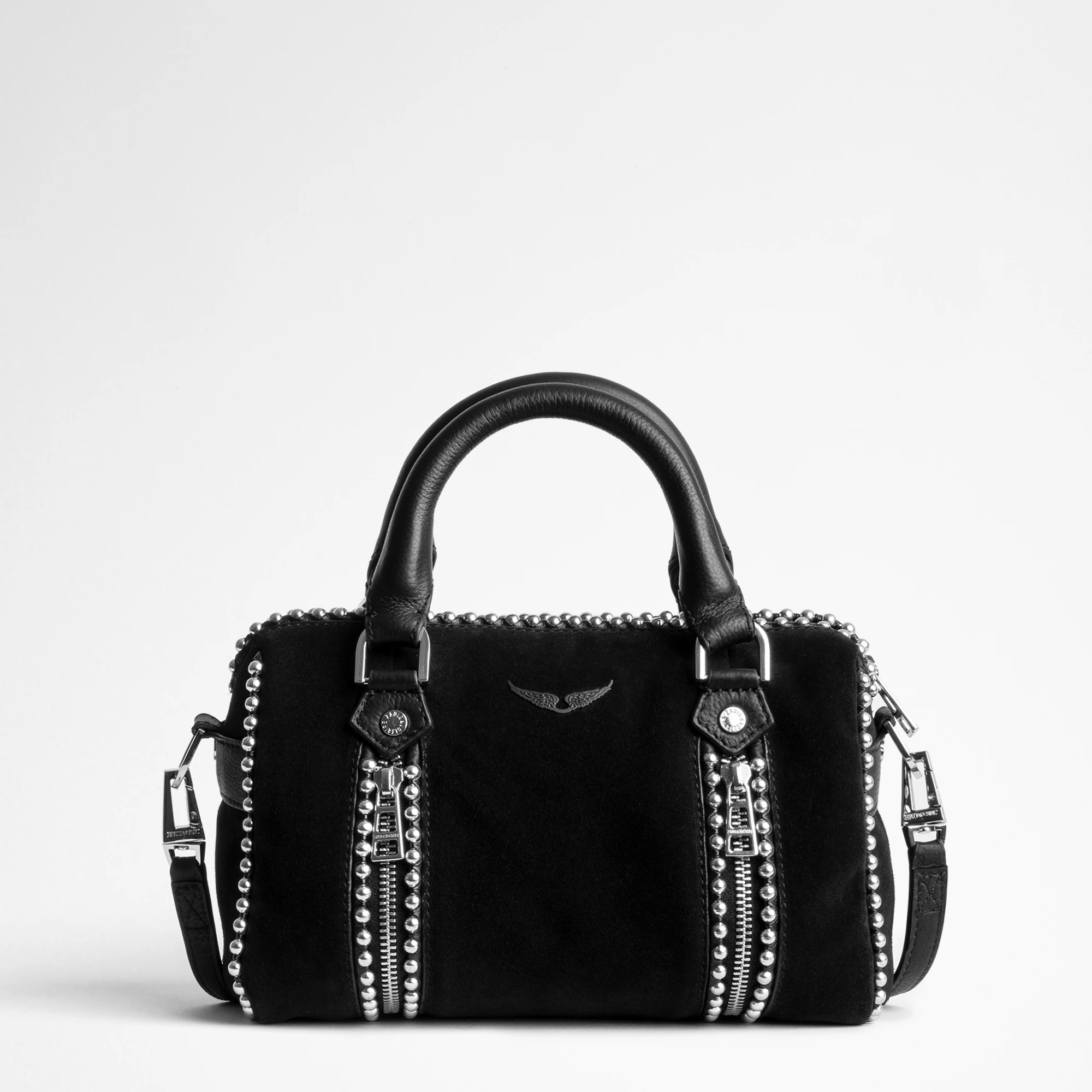 Petit sac noir femme en cuir suédé agrémenté de clousVoir plus