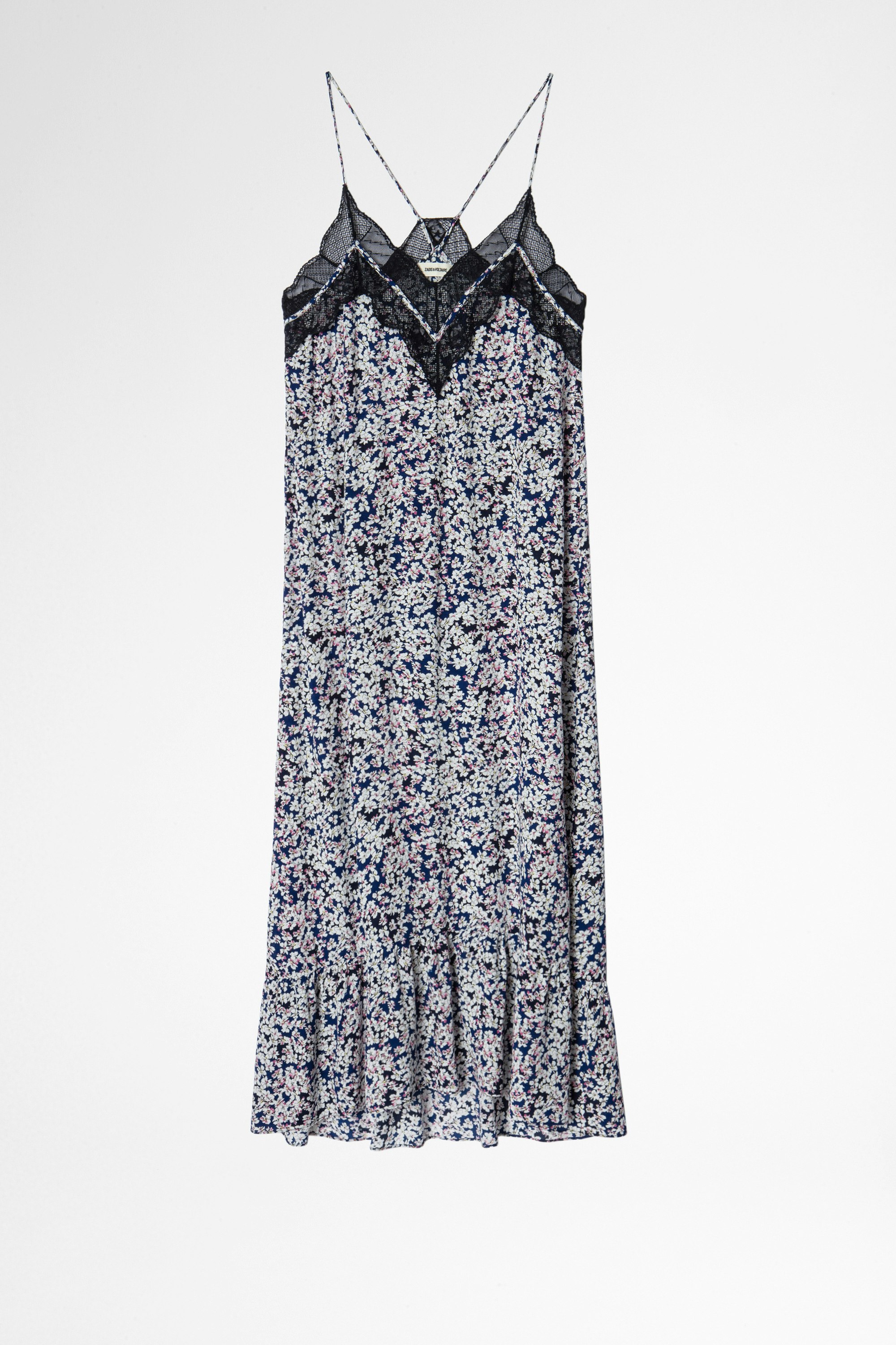 Robe bleue femme Zadig&Voltaire, imprimée, longue, agrémentée de fines bretelles et de dentelle,