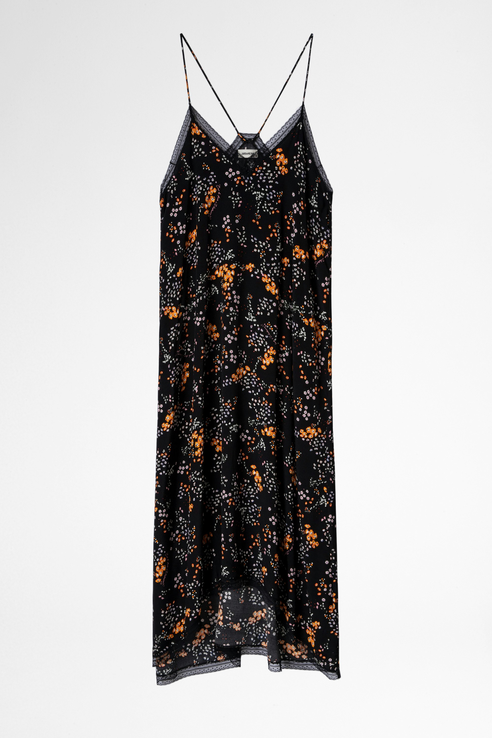 Iconique, la robe Risty s'accessoirise et se transforme facilement en robe du soir avec ses détails précieux : un imprimé fleuri star de la saison, et des bandes de dentelle fine et délicatement transparente.