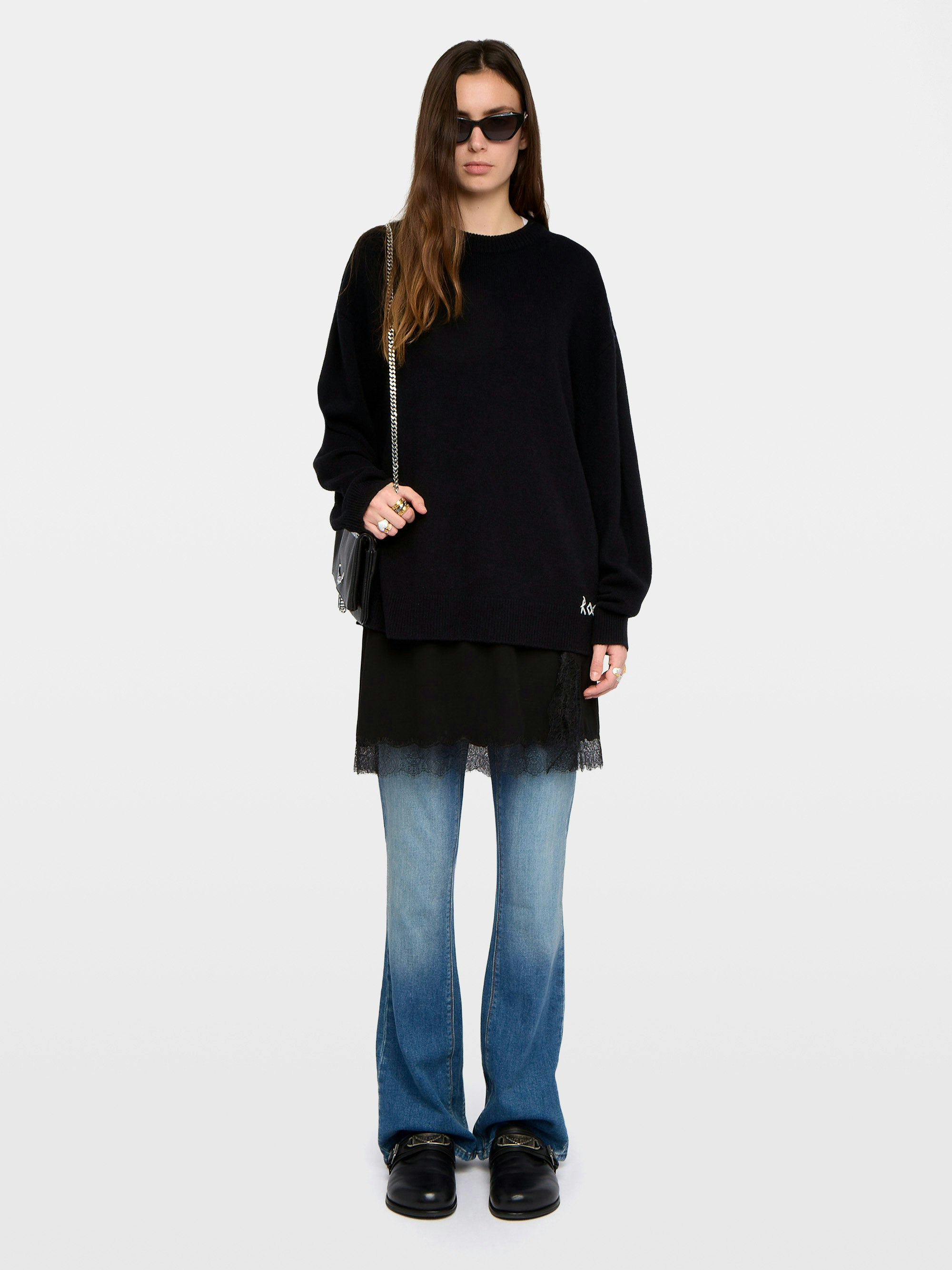 Maglione Swyny - Maglia oversize con scollo a V e ricamo a mano sul fondo.