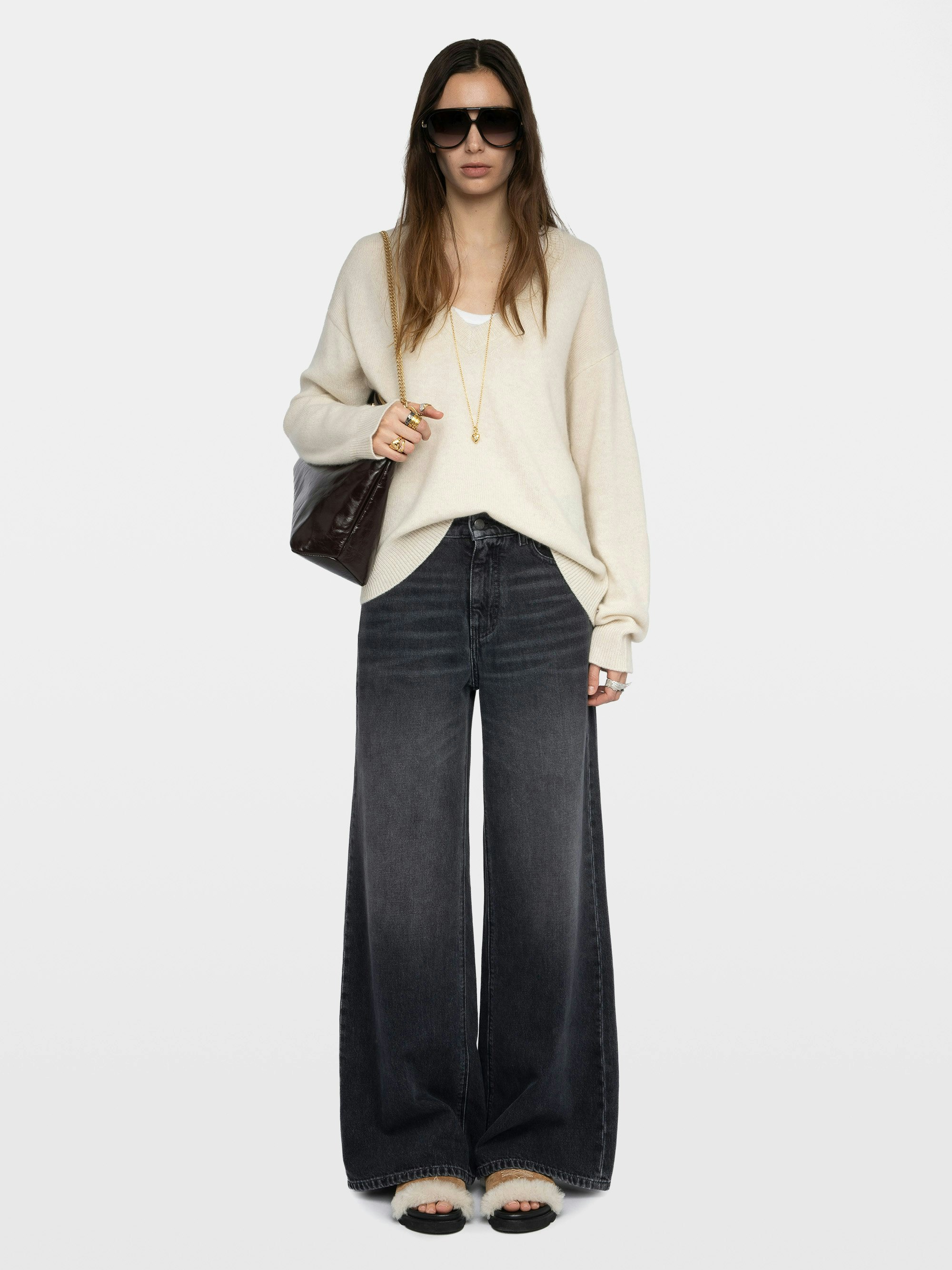 Maglia Mikyz 100% Cashmere - Maglia con scollo a V e maniche lunghe con ricamo Rock n Roll sullo scollo e sulla manica destra.