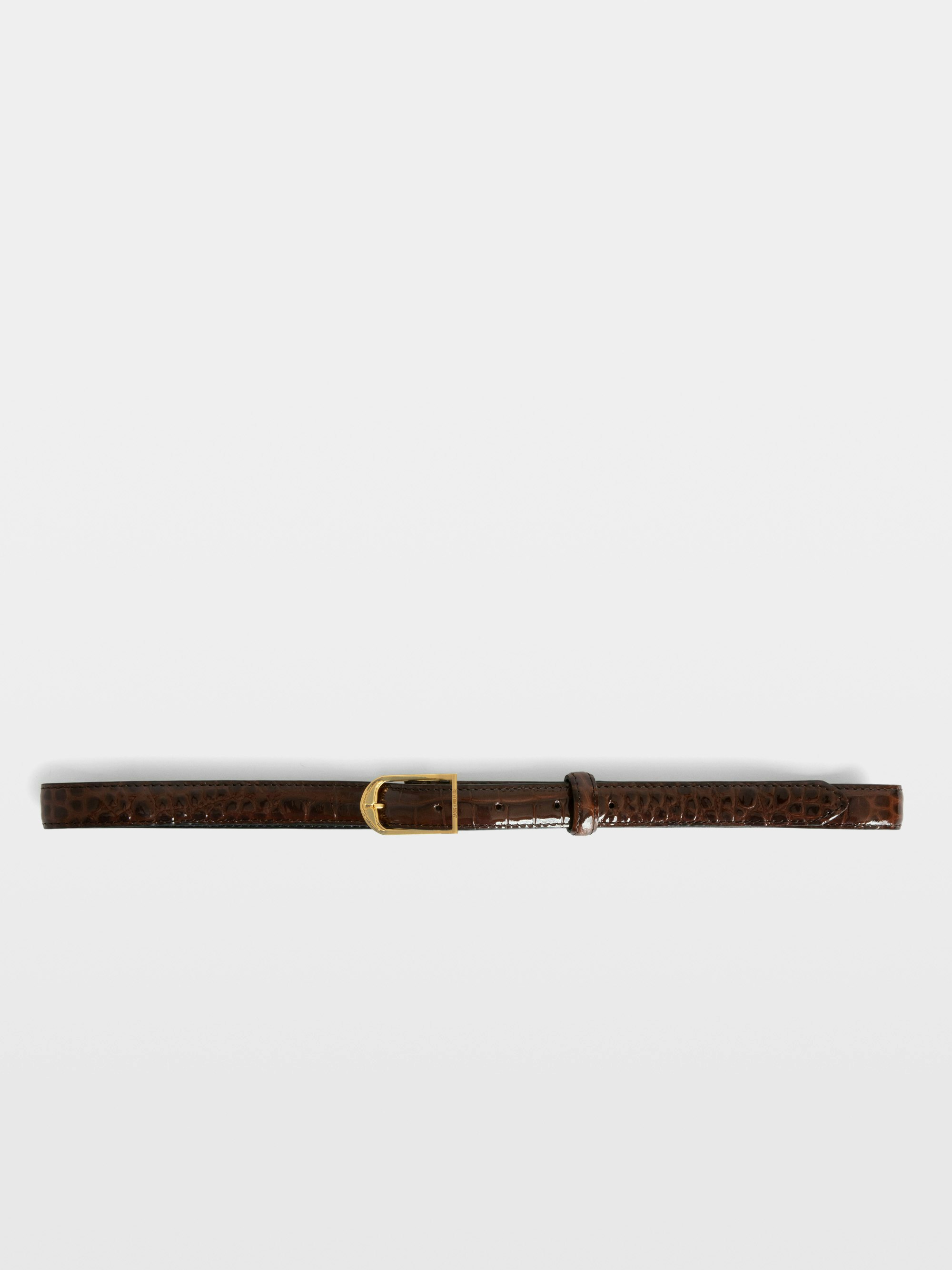 Cintura in pelle goffrata effetto coccodrillo con finitura lucida.
