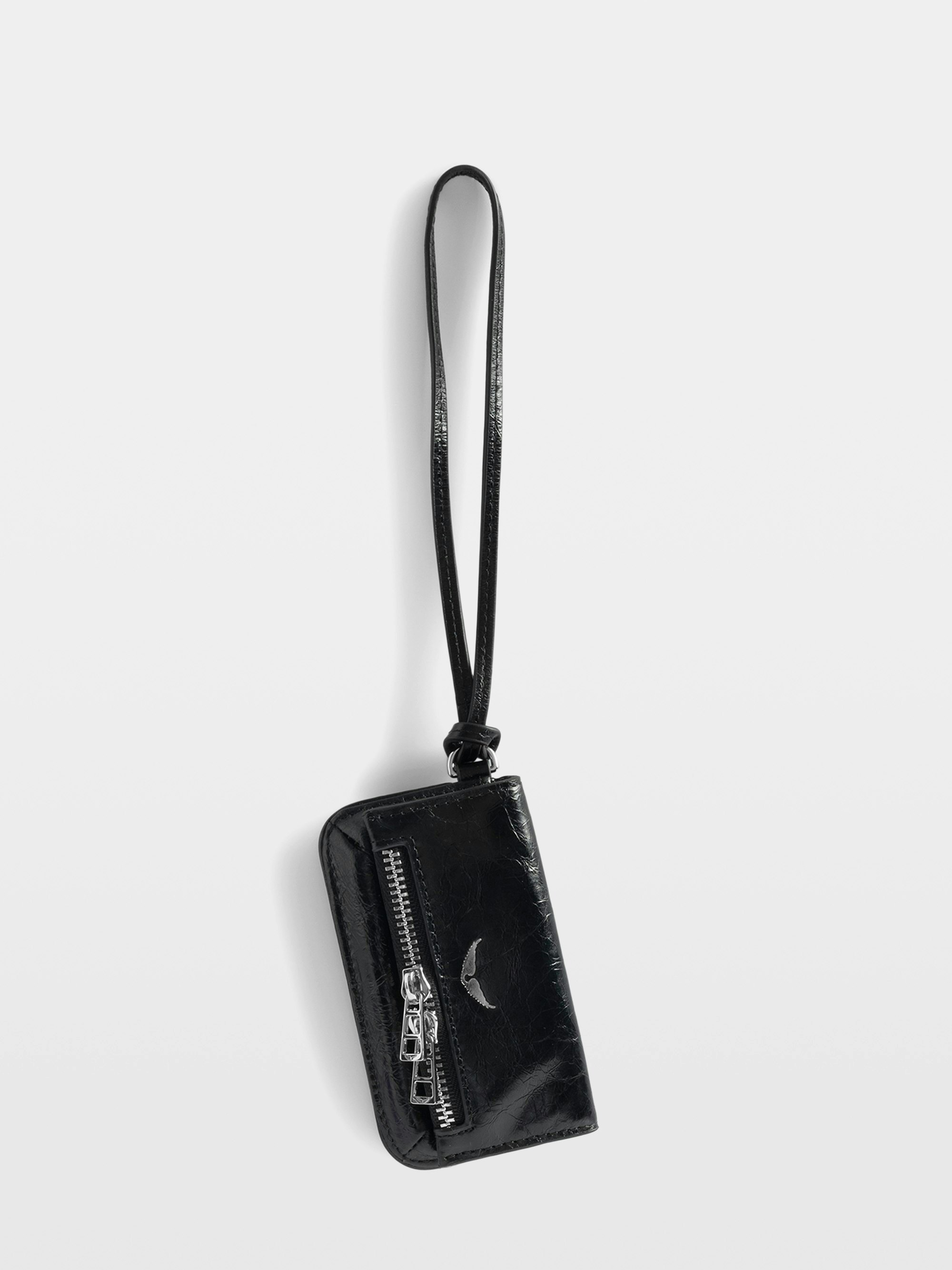 Ciondolo mini pochette Rock in pelle vintage con tasca con zip, tasca interna e specchio interno.