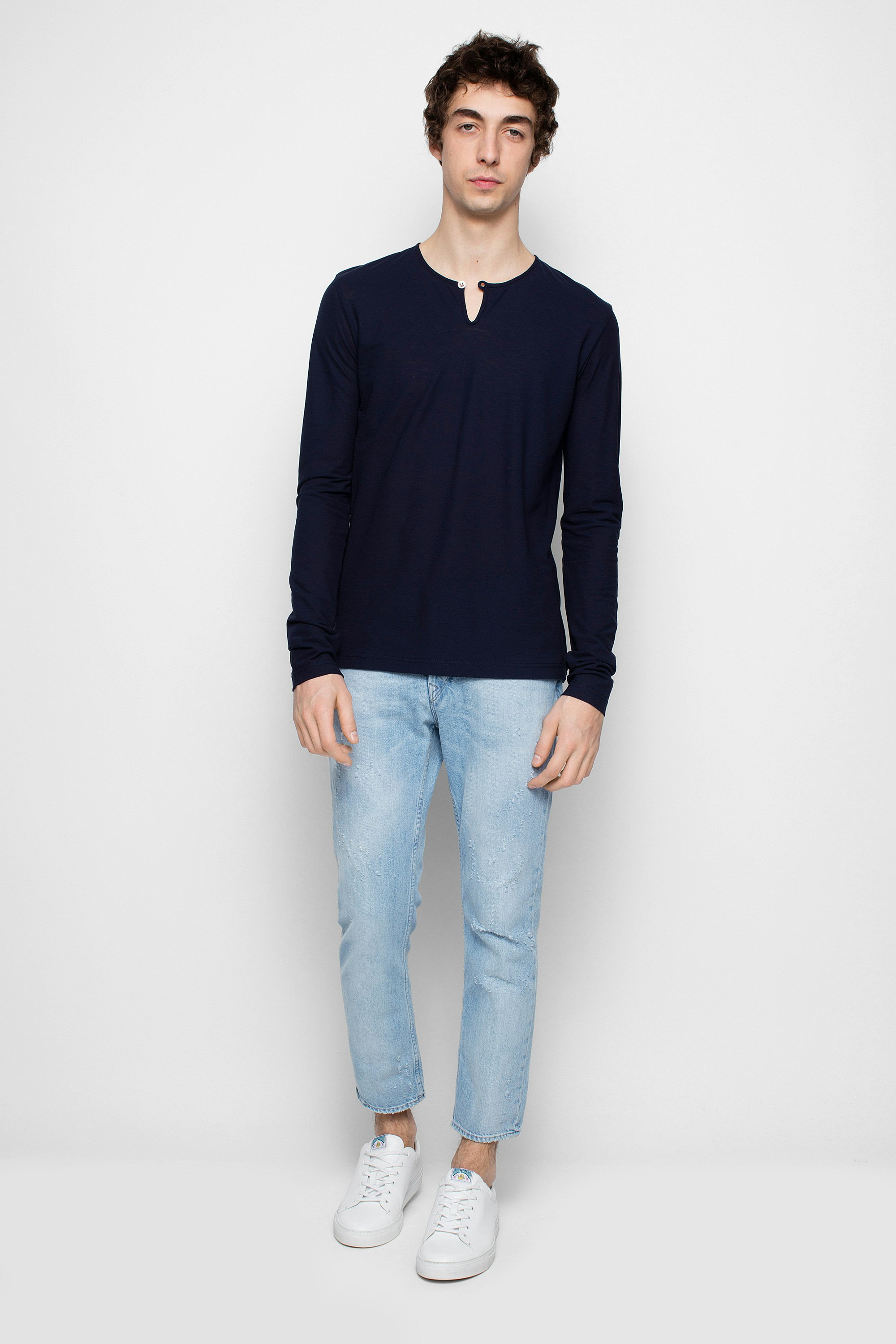 Maglietta alla tunisina in cotone con stampa sui gomiti