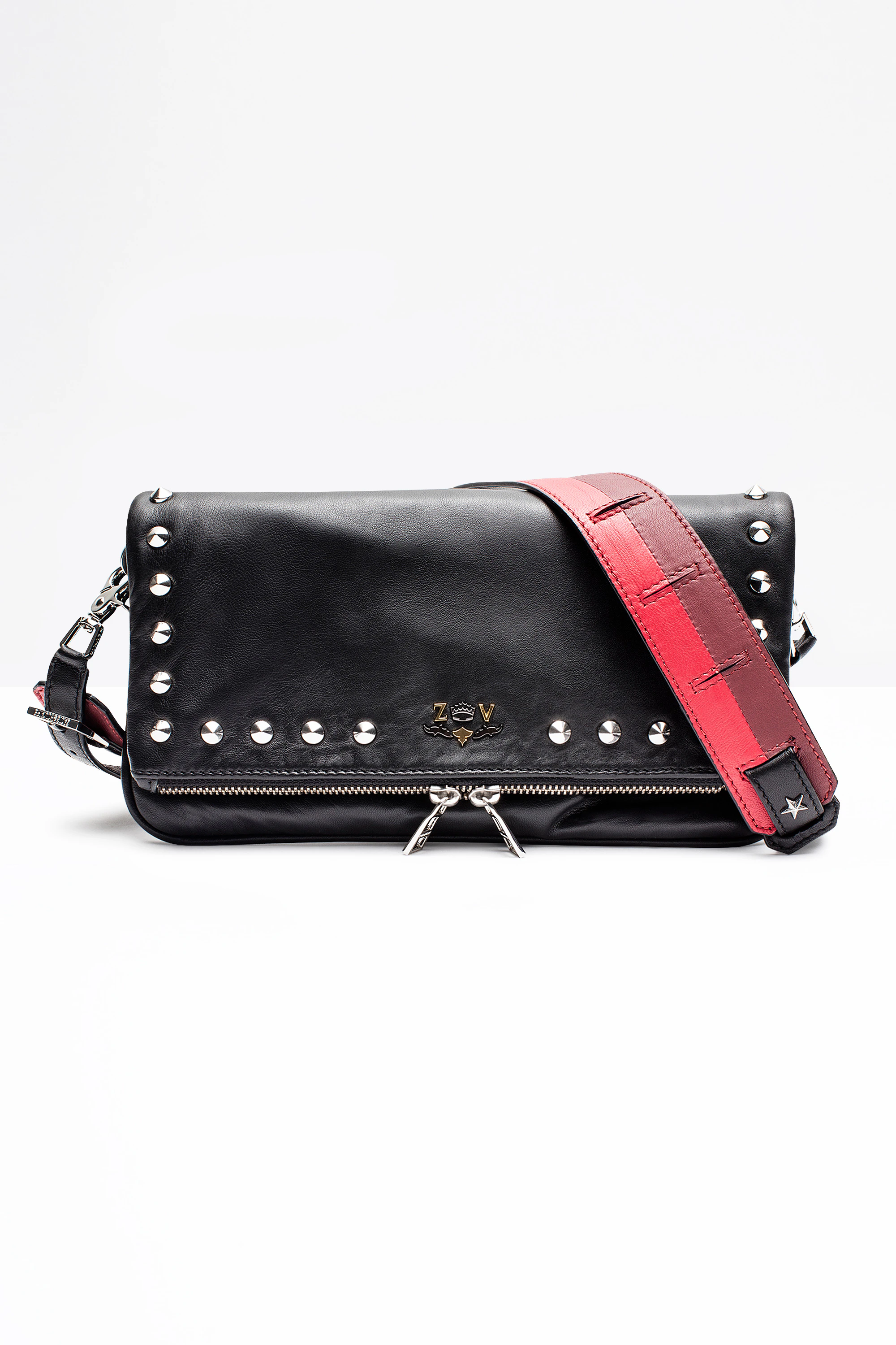 Pochette con cerniera Zadig & Voltaire, con fila di borchie, da portare a spalla o a tracolla, 27x18x2 cm, 100% pelle. Emblema della maison, la pochette Rock si reinventa a ogni stagione per regalarti un look al tempo stesso rock, sofisticato e dinamico, di giorno e di sera.