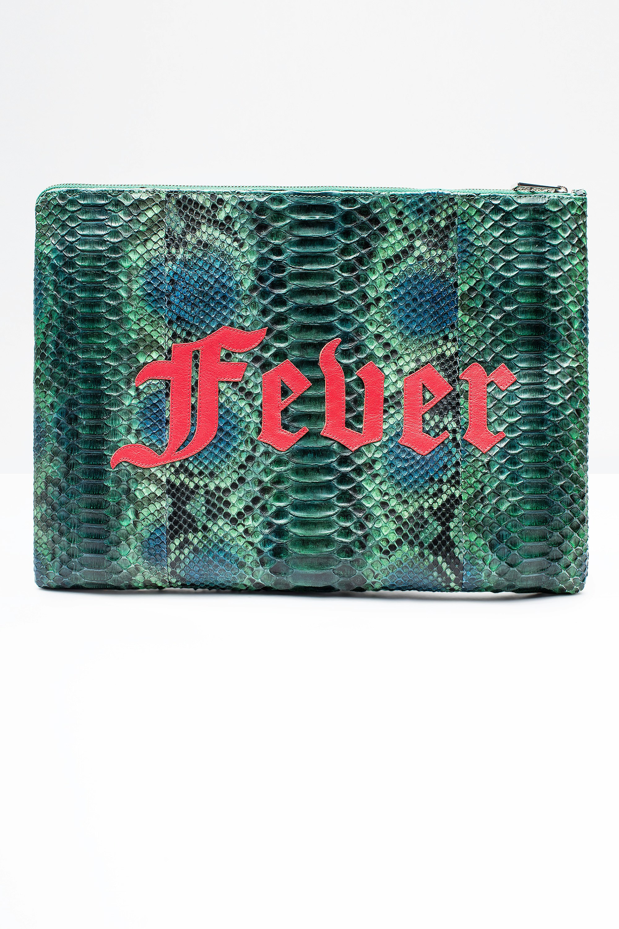 Grande pochette con cerniera in pitone e pelle