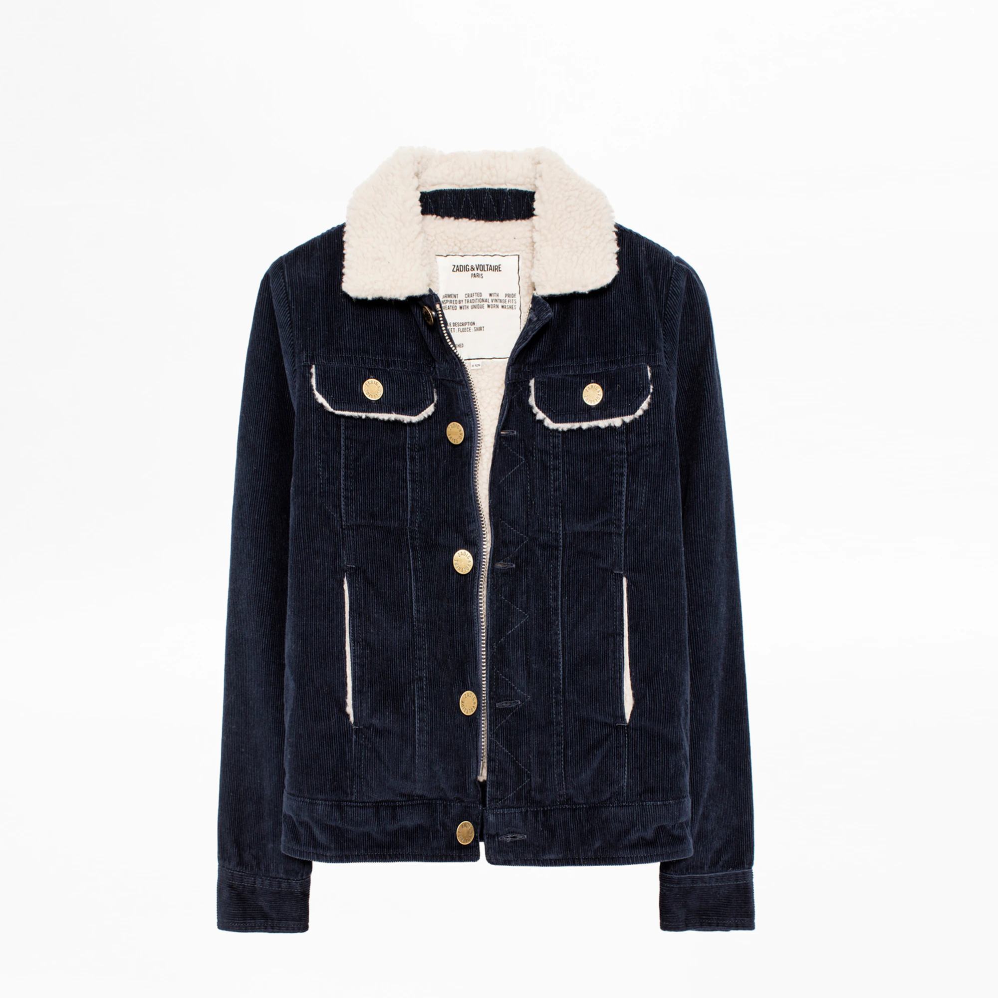 Giacca in velluto da bambino Zadig & Voltaire, fodera in finta pelliccia, chiusura abbottonatura sul davanti e sui polsini, ricamo su gomiti.