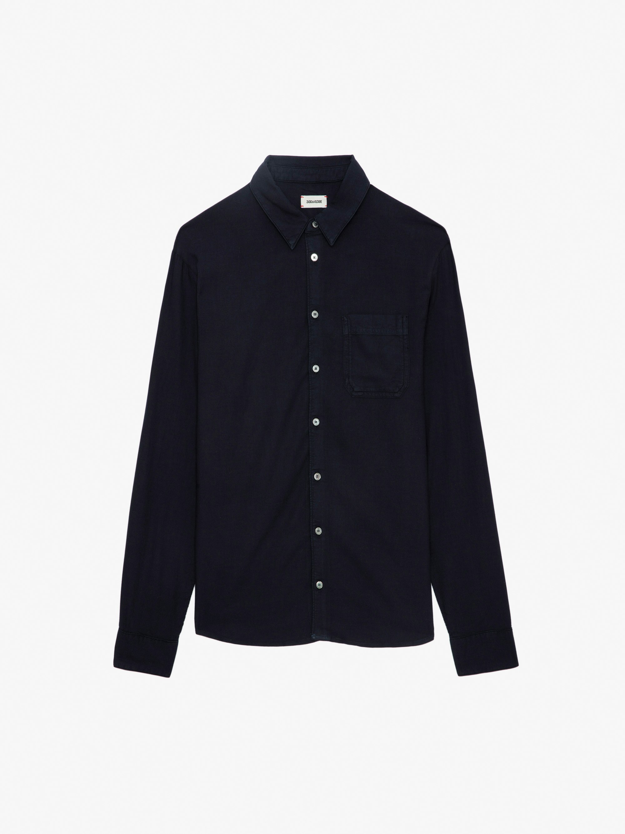 Camicia fluida blu navy con maniche lunghe e tasca.
