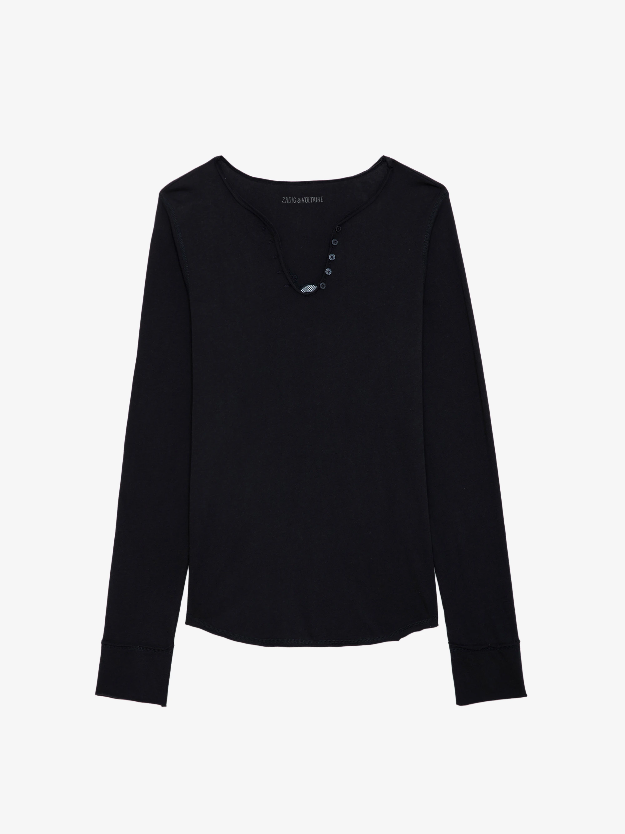 - Henley T-shirt with 5 buttons on a V neck