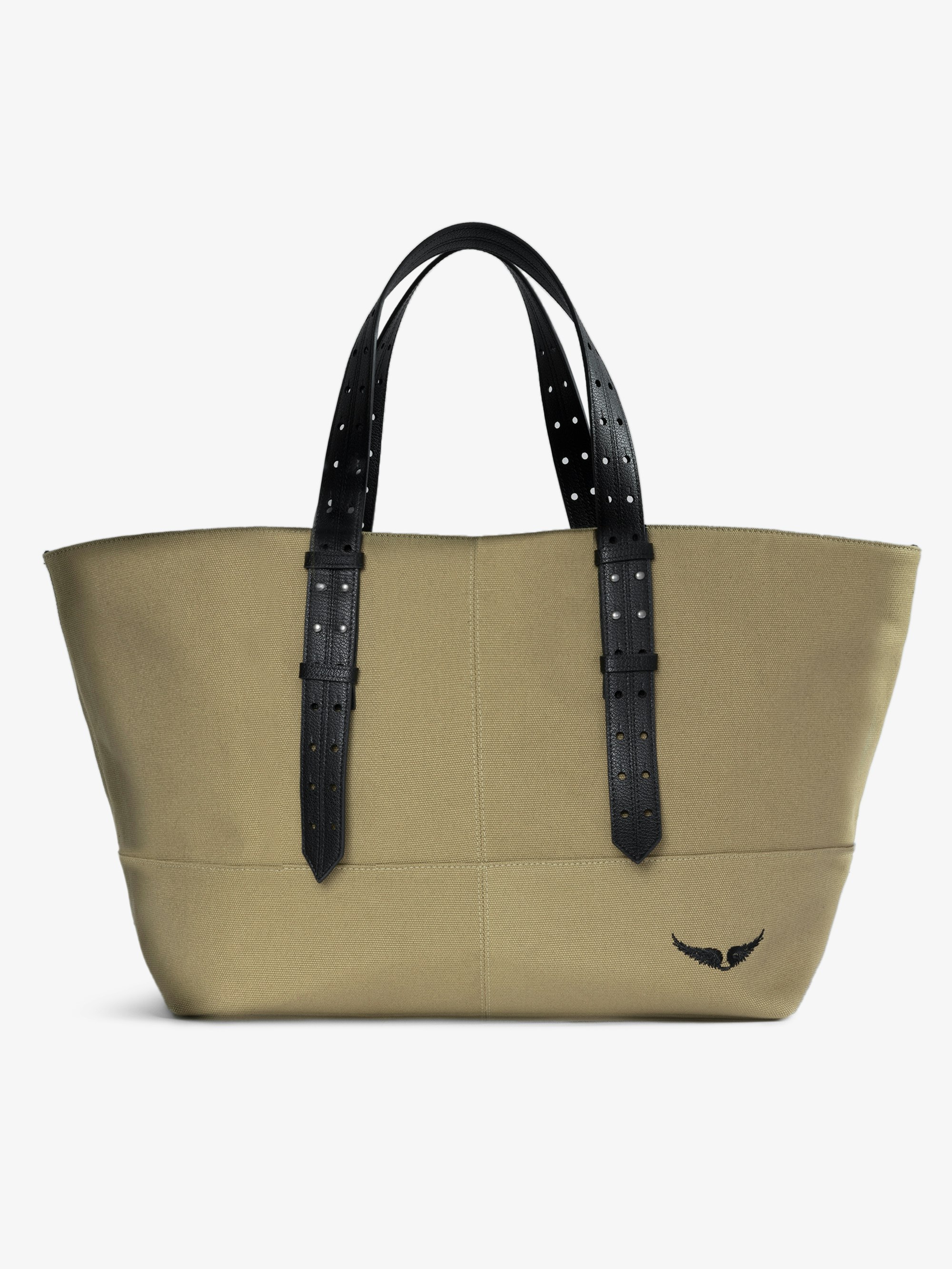 Military-style canvas tote bag with signature wings.