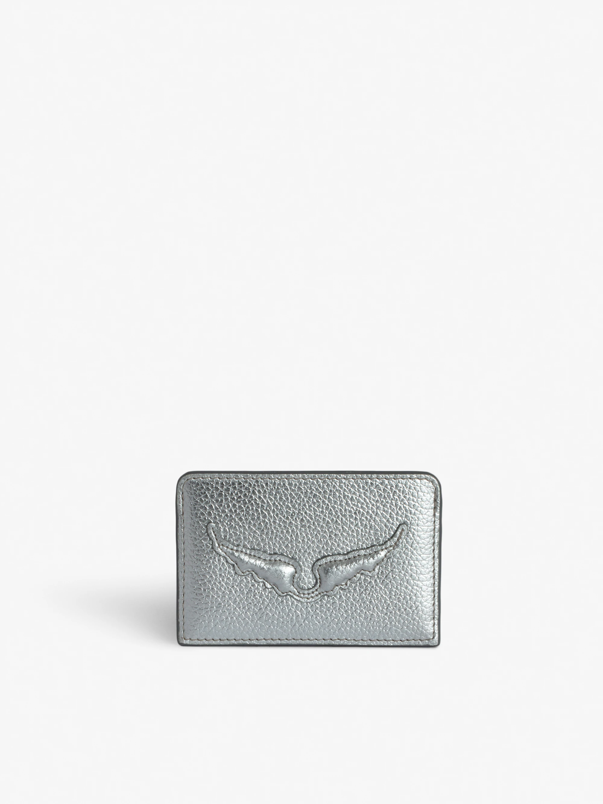 Silver-tone metallic grained leather card holder with embossed wings signature and debossed "Enjoy today" message.See more