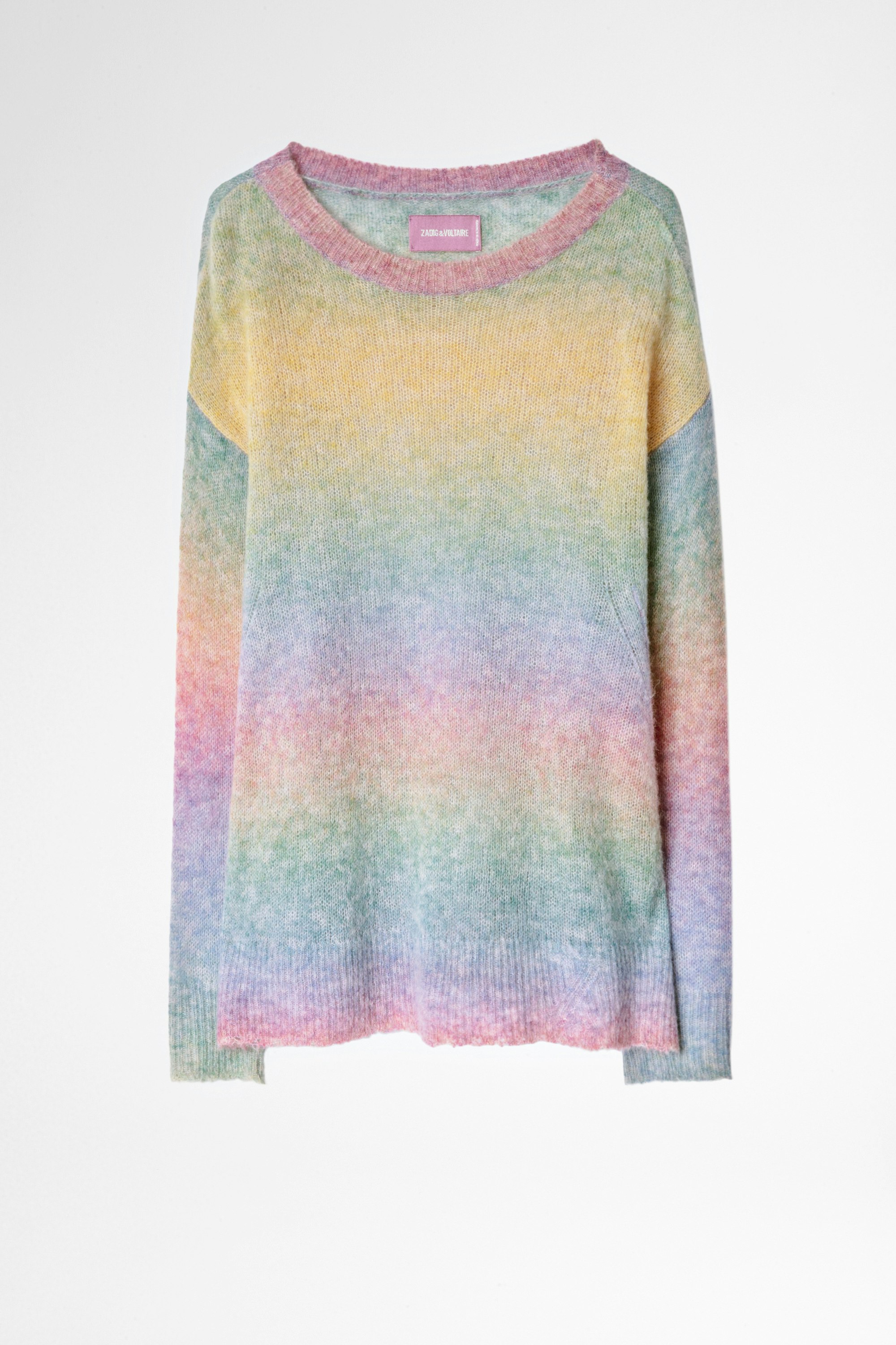 Woman’s Zadig&Voltaire multicoloured round neck sweater. The softness of its rainbow gradient merges with that of the knit.
