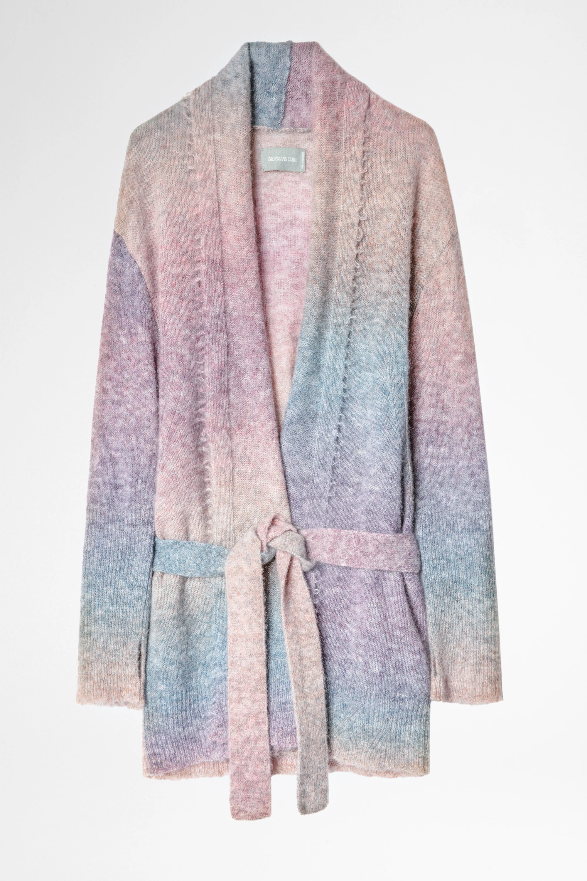 This belted cardigan with its soft, multicoloured, rainbow-style knit, can be worn like a jacket. - Zadig&Voltaire women’s multicoloured cardigan - Knit with fringed edges - Belt at the waist - Long sleeves with thumbholes