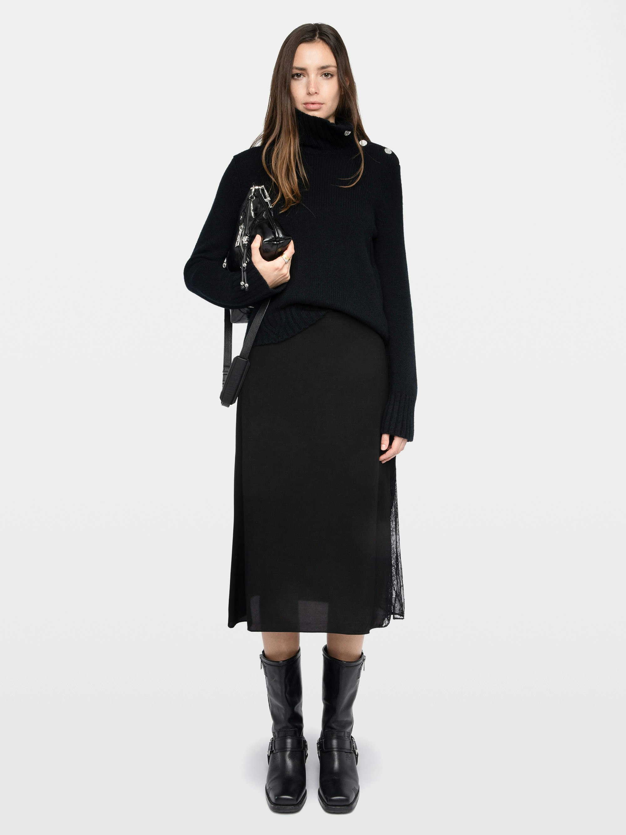 Mid-length lingerie-inspired skirt in viscose with lace.