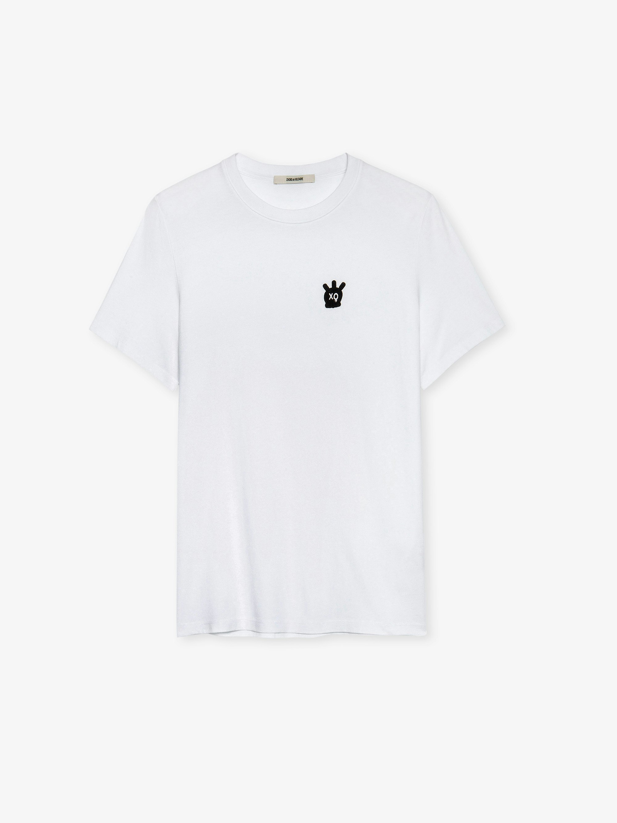 Men's white cotton T-shirt featuring a Skull XO patch on the chest.See more