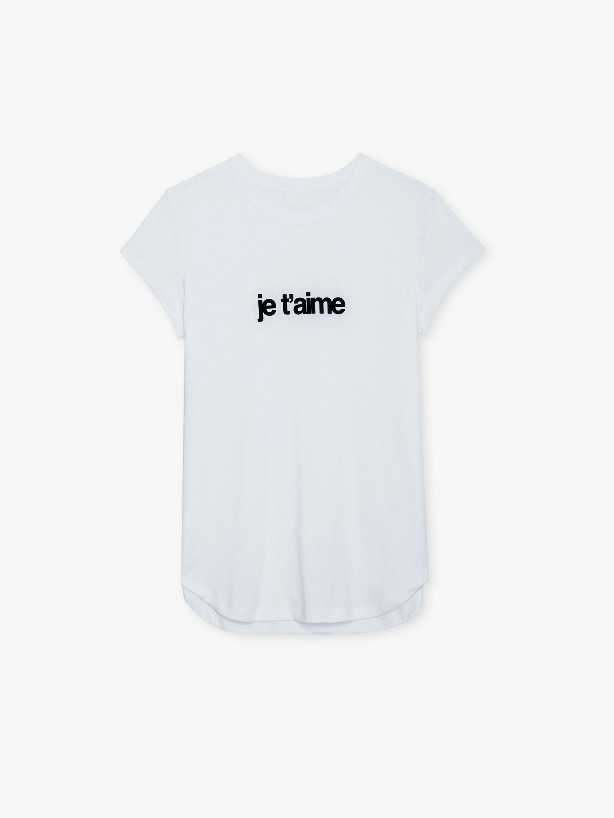- Flocked “Je t’aime” print on the back