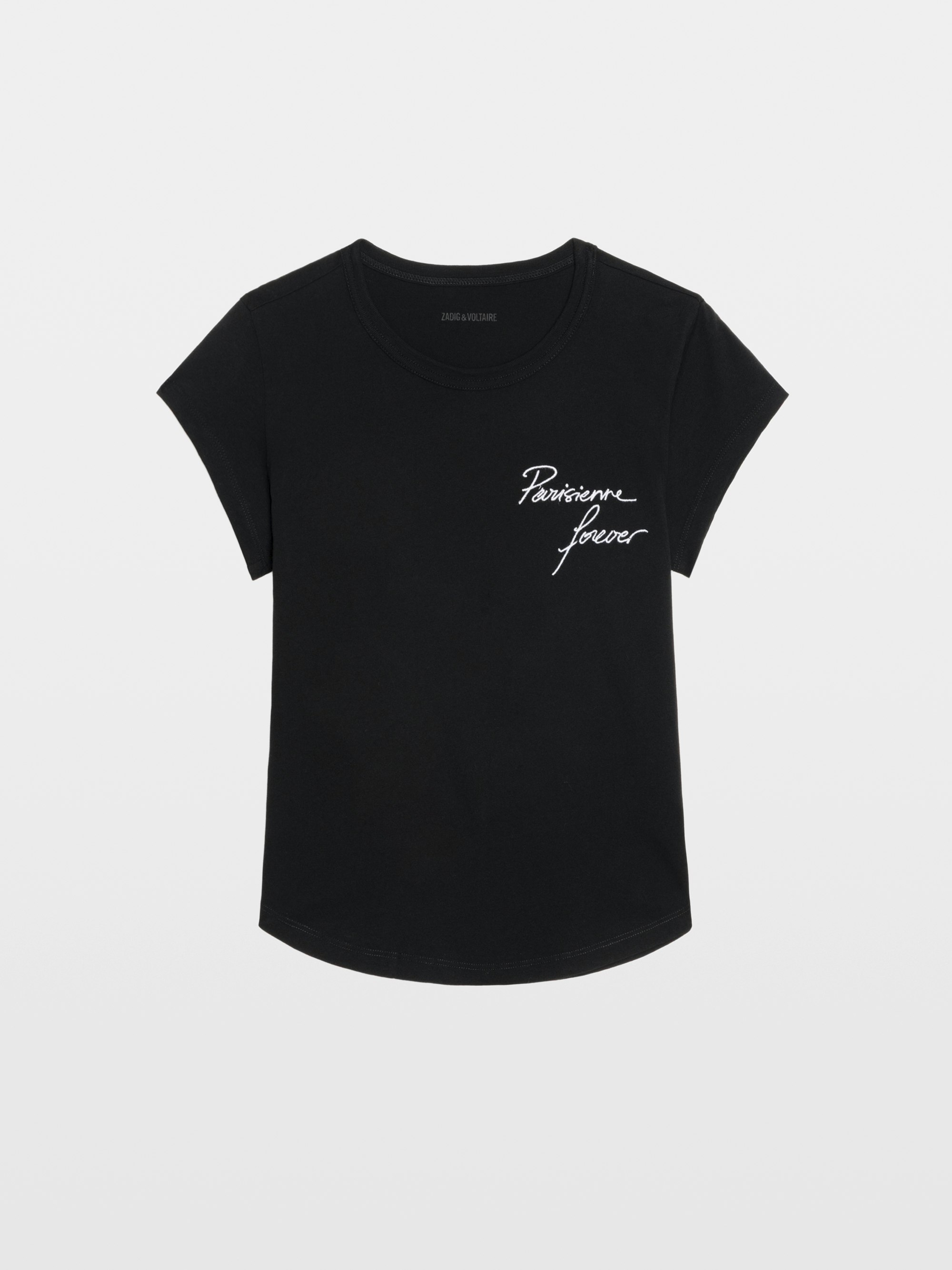 Crew-neck short-sleeve T-shirt with front embroidery.