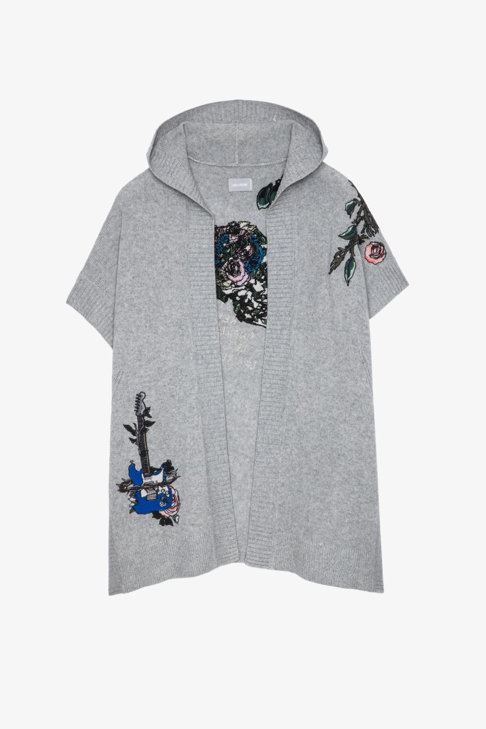 Women’s long patterned cardigan with hood in a grey marl knitSee more