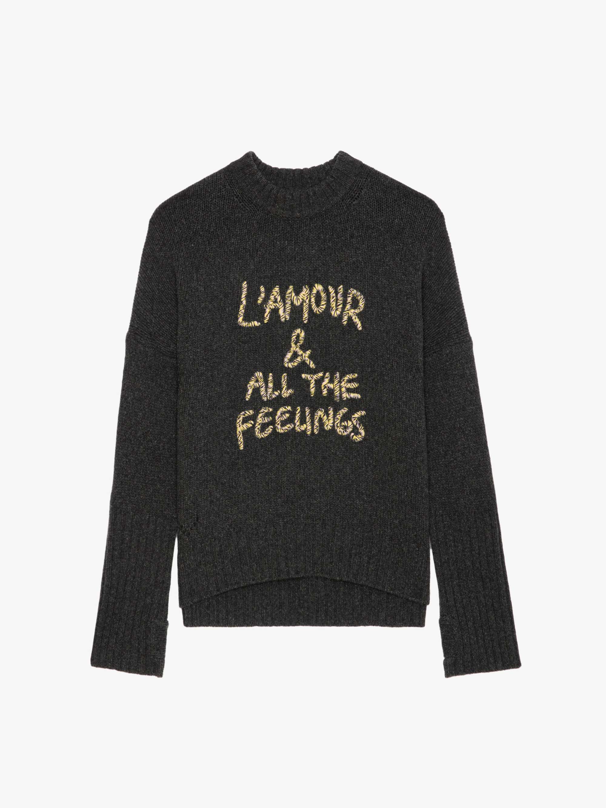 Long-sleeved, loose-fitting sweater in thick anthracite merino wool with "L'amour & All The Feelings" embroidery.See more
