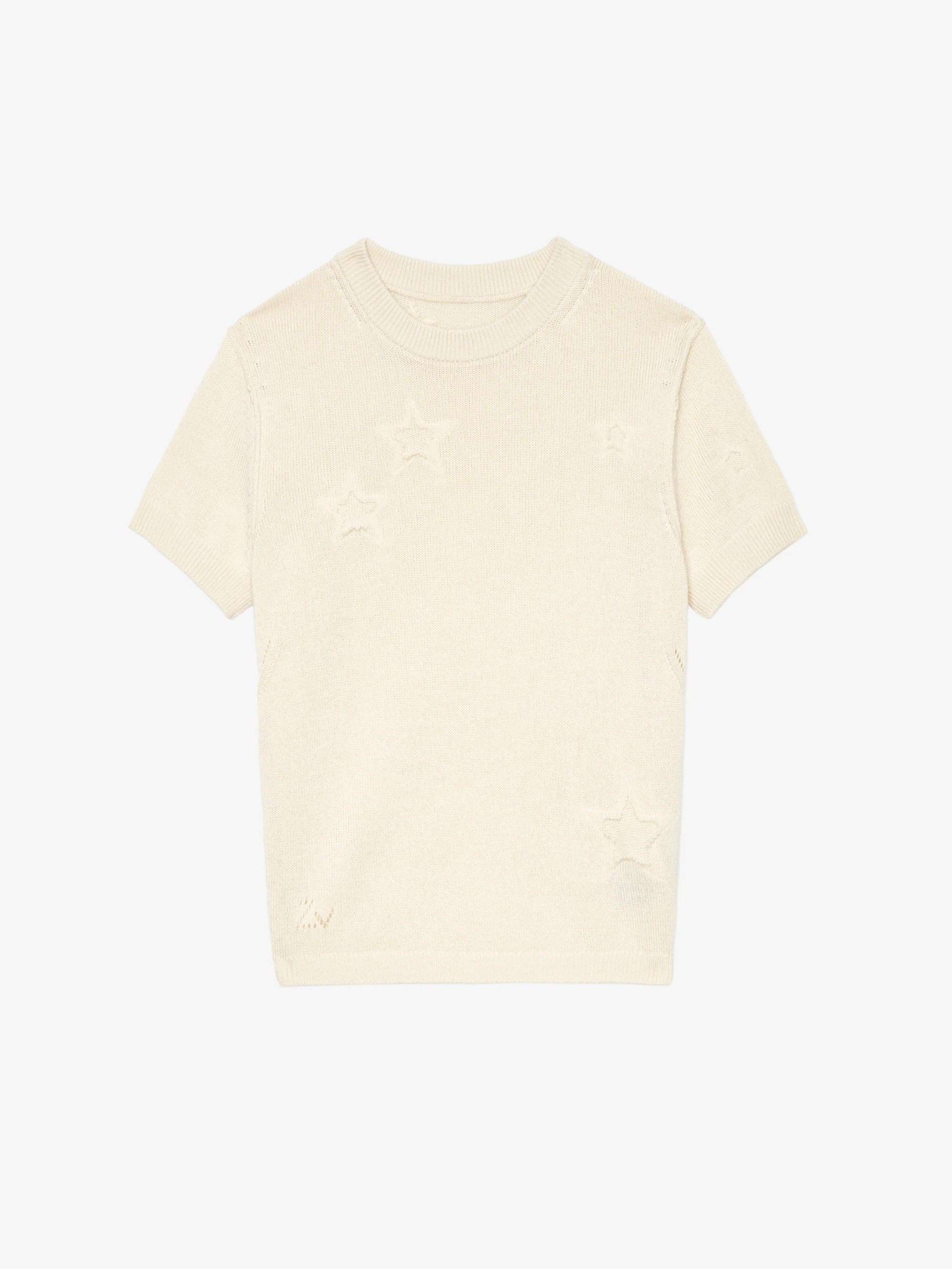 Round neck sweater with worn-effect stars.