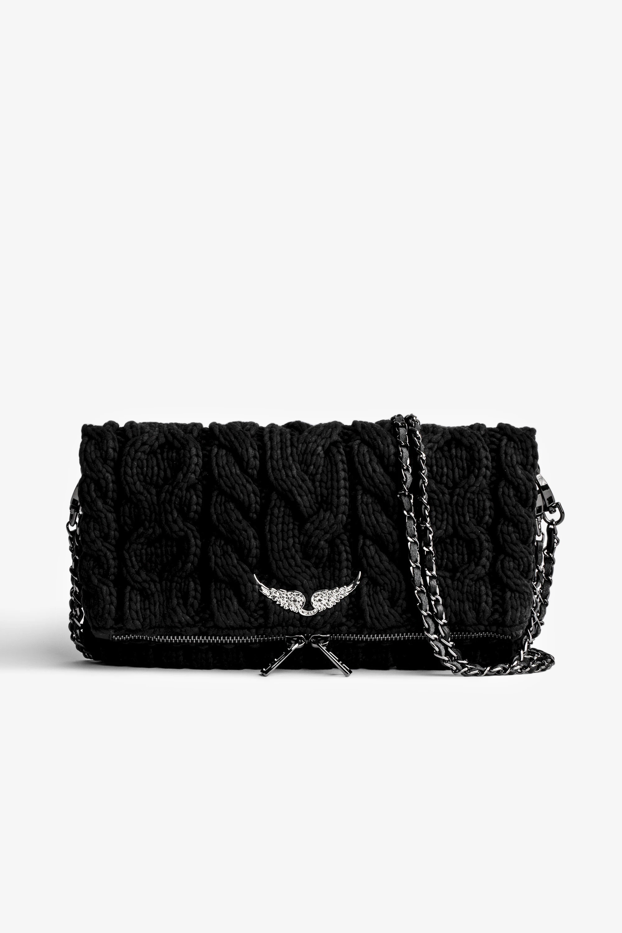 - Zadig&Voltaire women’s Rock clutch in black cotton knit