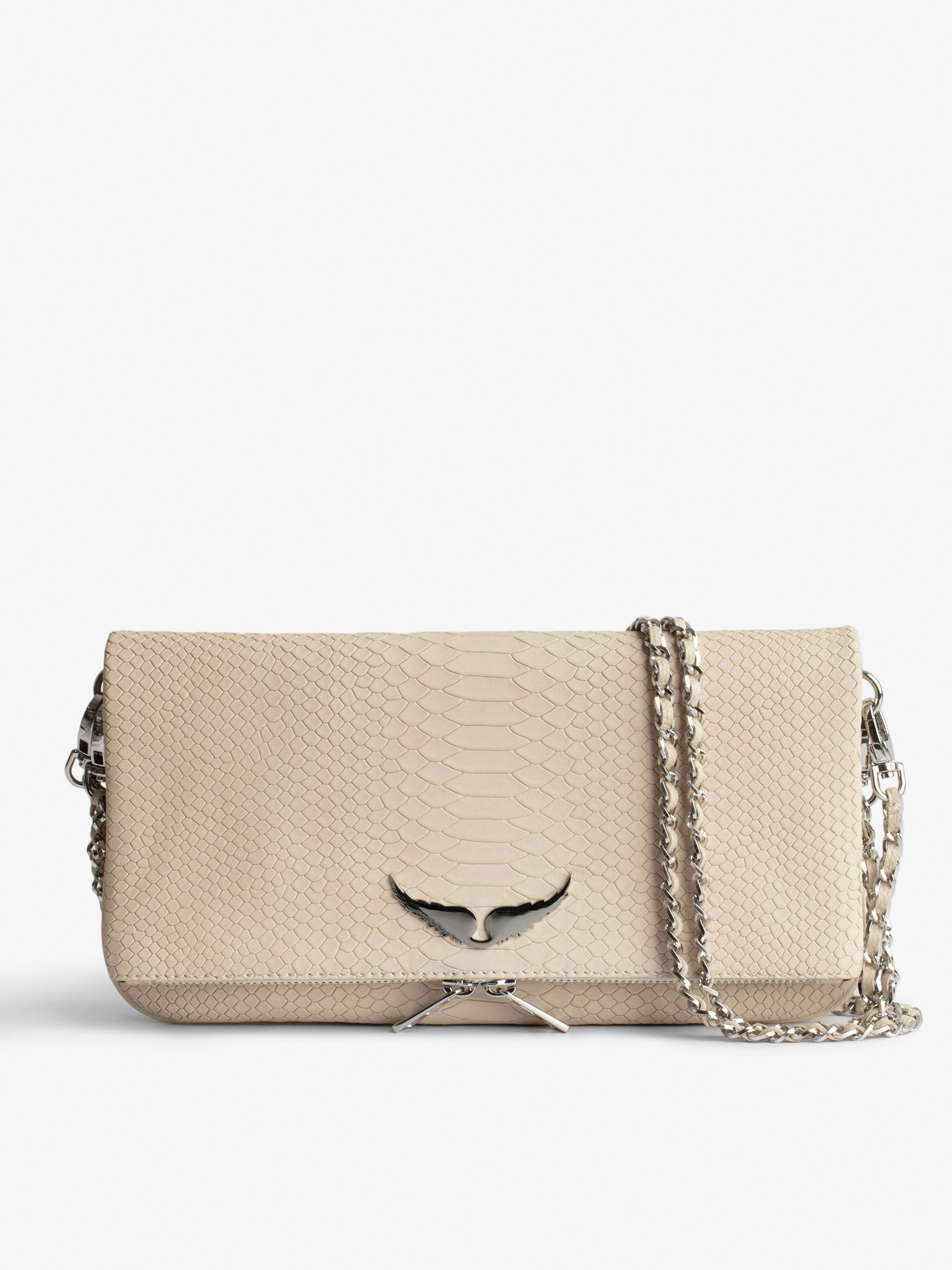 - Women's Zadig&Voltaire Rock clutch in Flash ecru python-effect leather