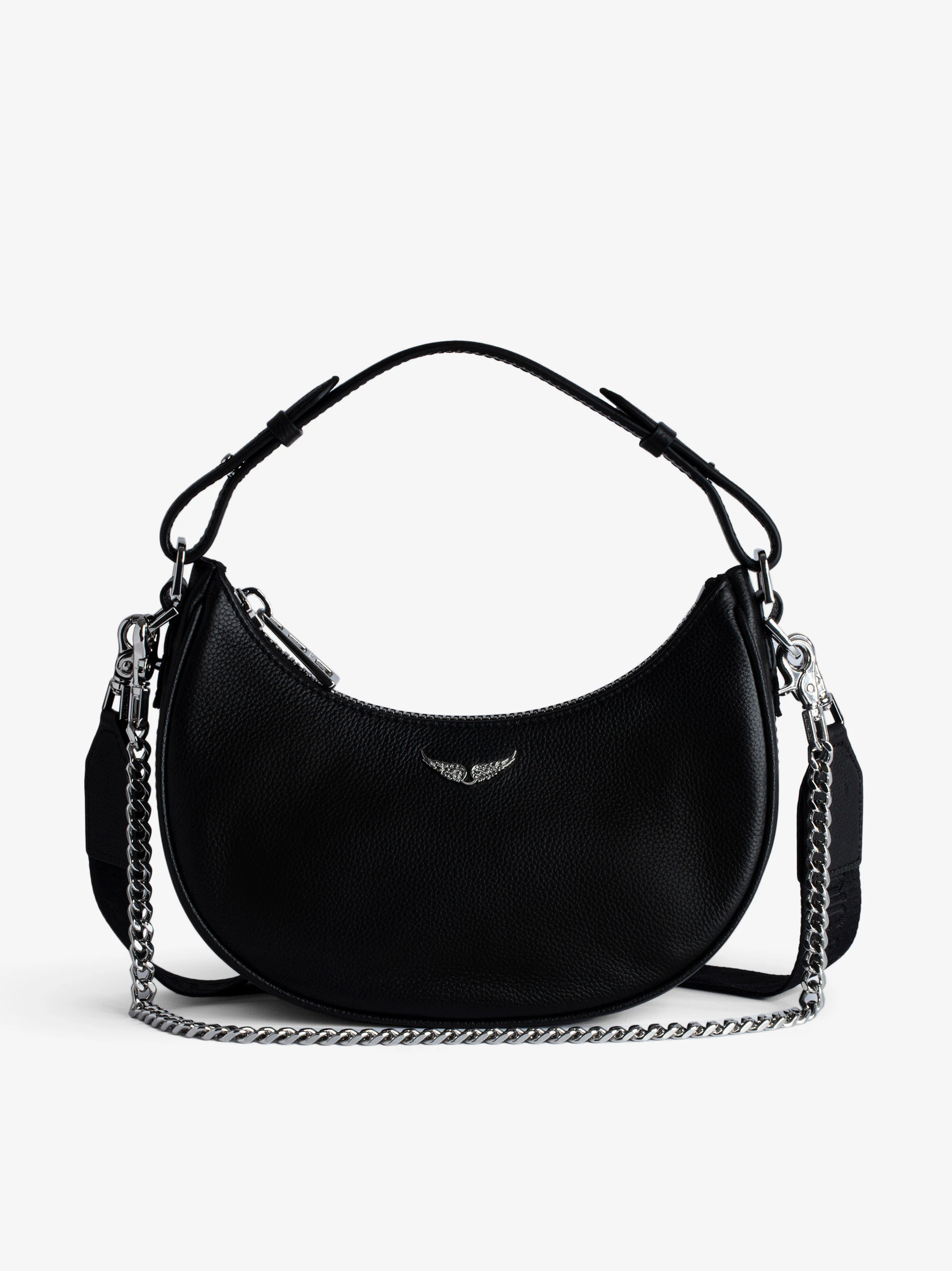 Women’s half-moon leather bag in grained leather with a short handle, shoulder strap, chain and signature wings.See more