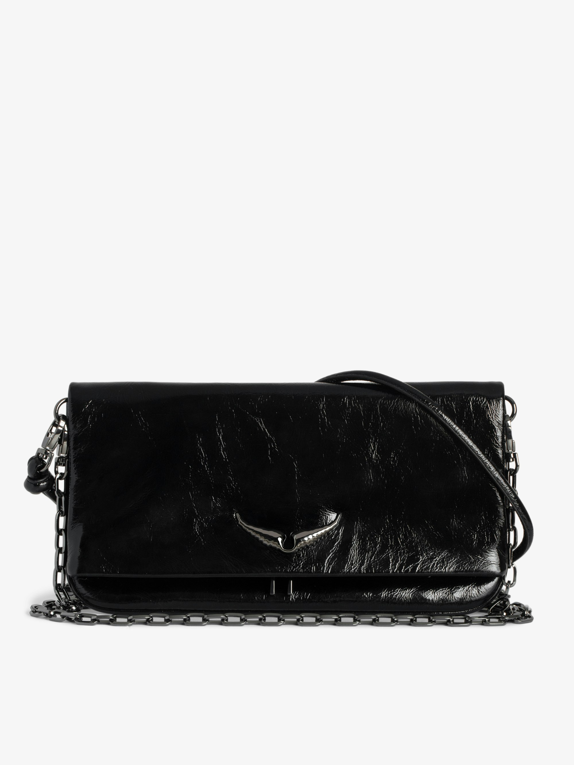 - Women’s Rock Eternal black creased patent leather clutch