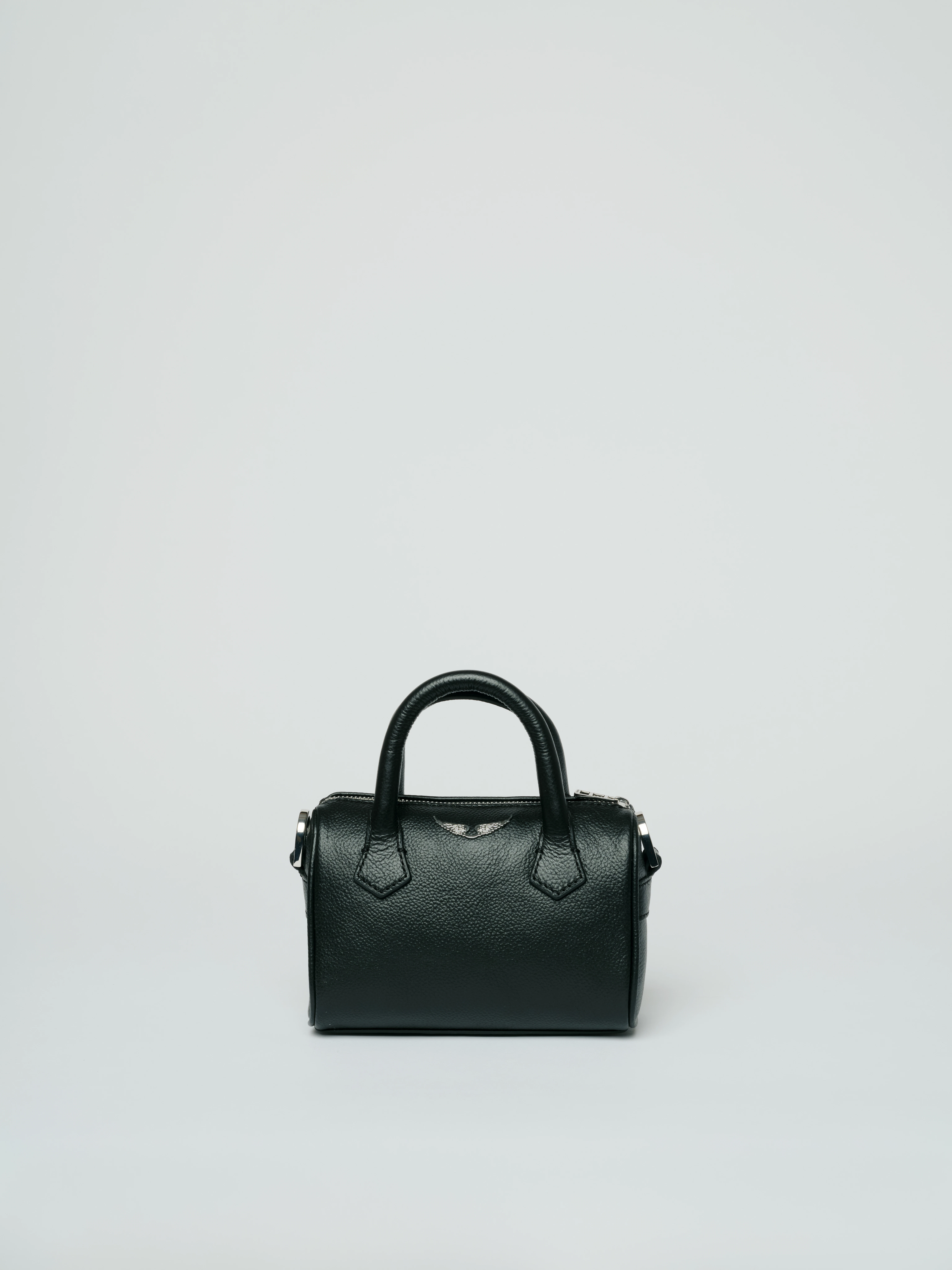 Small grained-leather bowling bag with double top handles, adjustable, removable shoulder strap, and Wings signature.See more