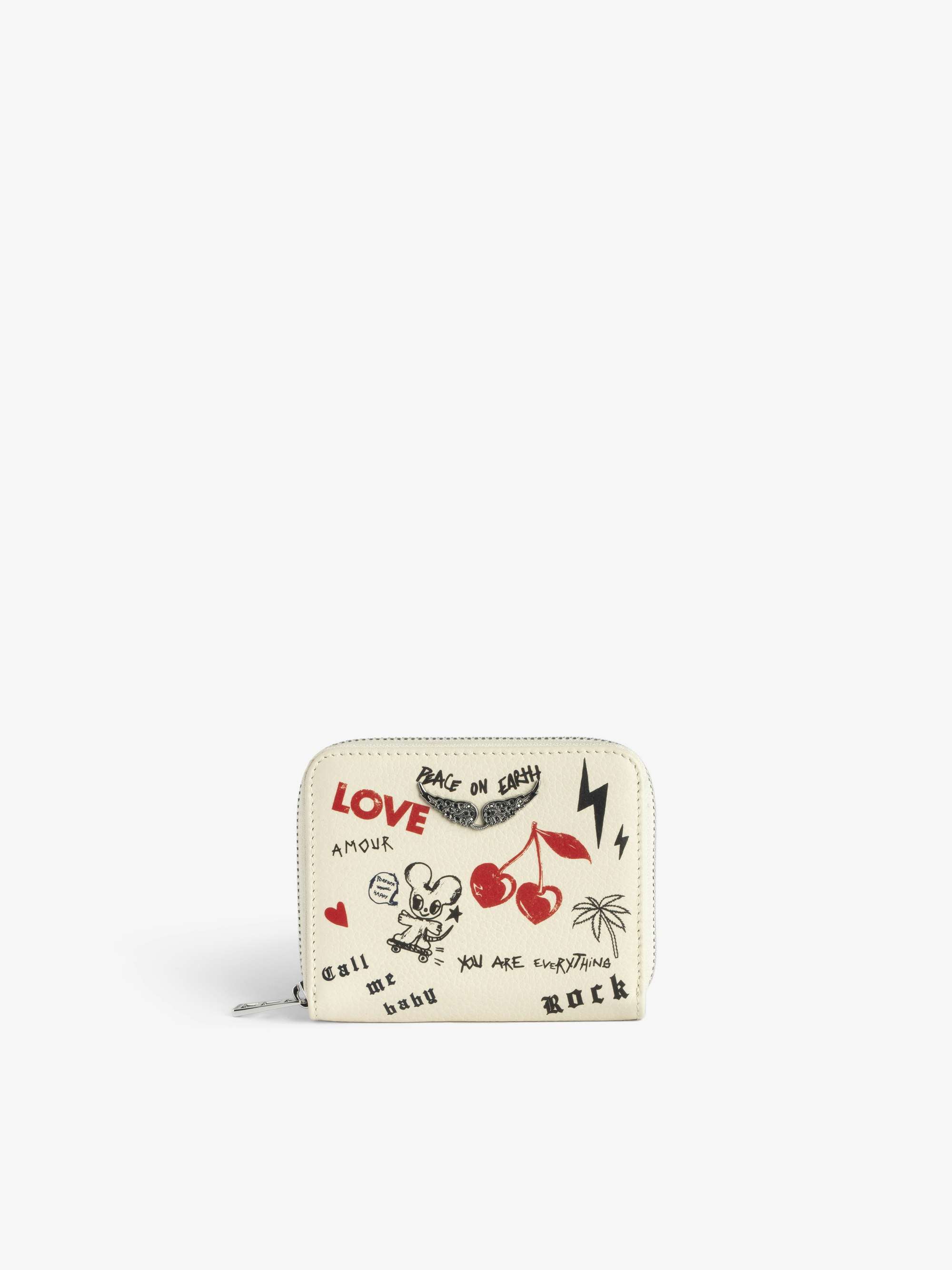 Grained leather Love Tag wallet adorned with signature metal wings.