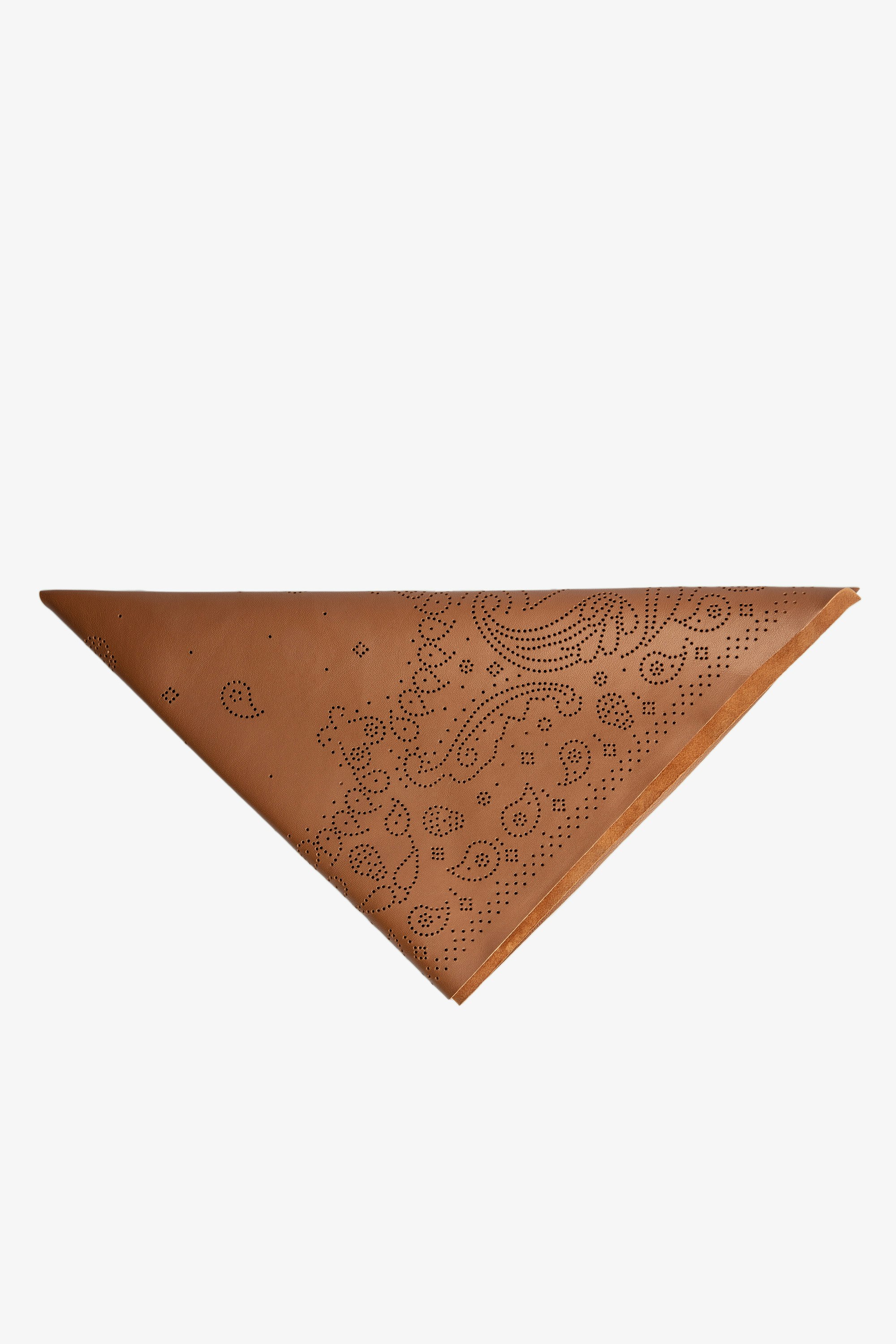 This triangle-shaped leather scarf is adorned with perforated detailing and can be worn in various ways: around the neck, on a bag or over your hair.