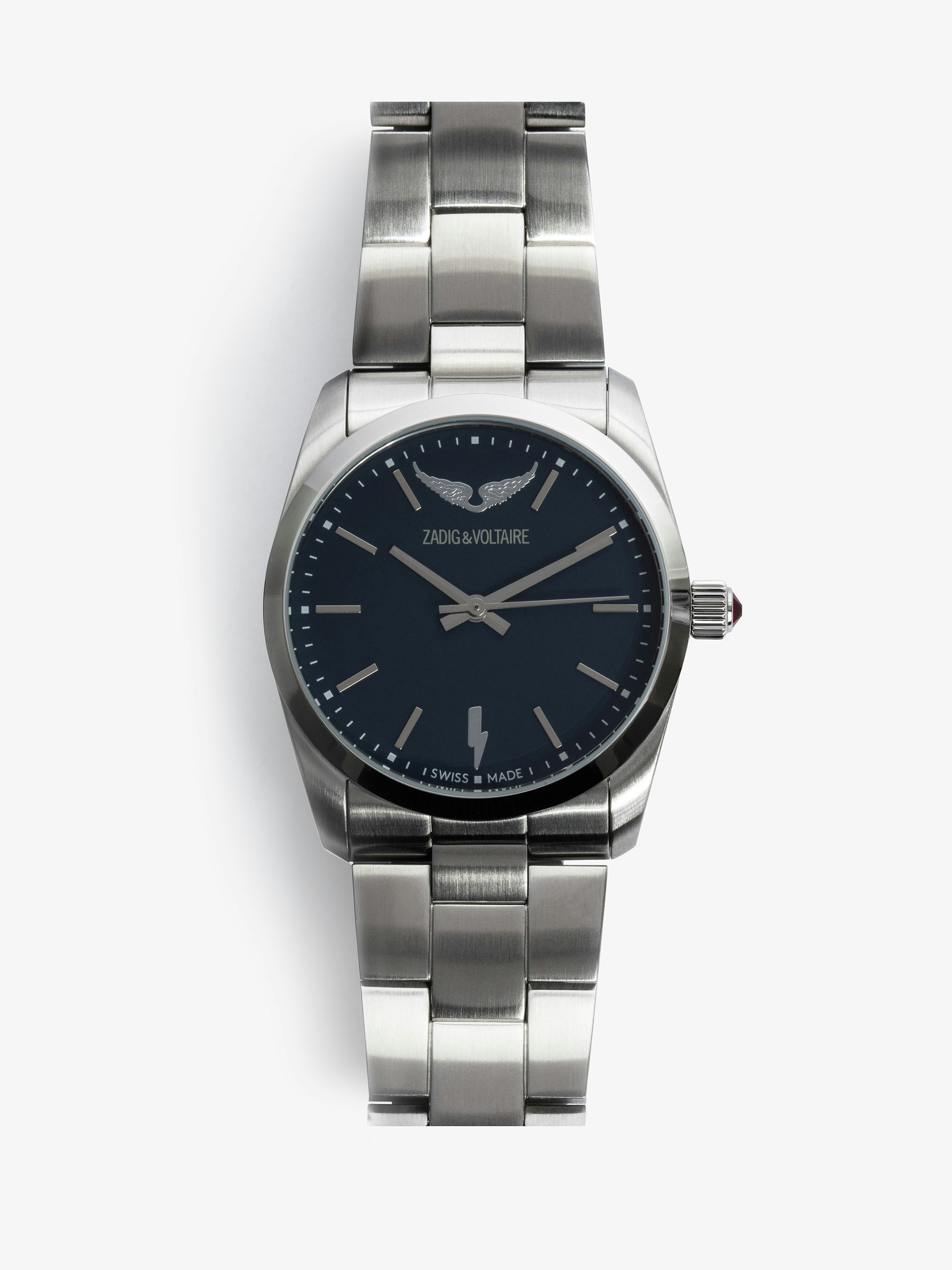 Switch to Zadig&Voltaire time with this stainless steel watch set with a rhinestone, with a matte blue face in the signature style of the brand.