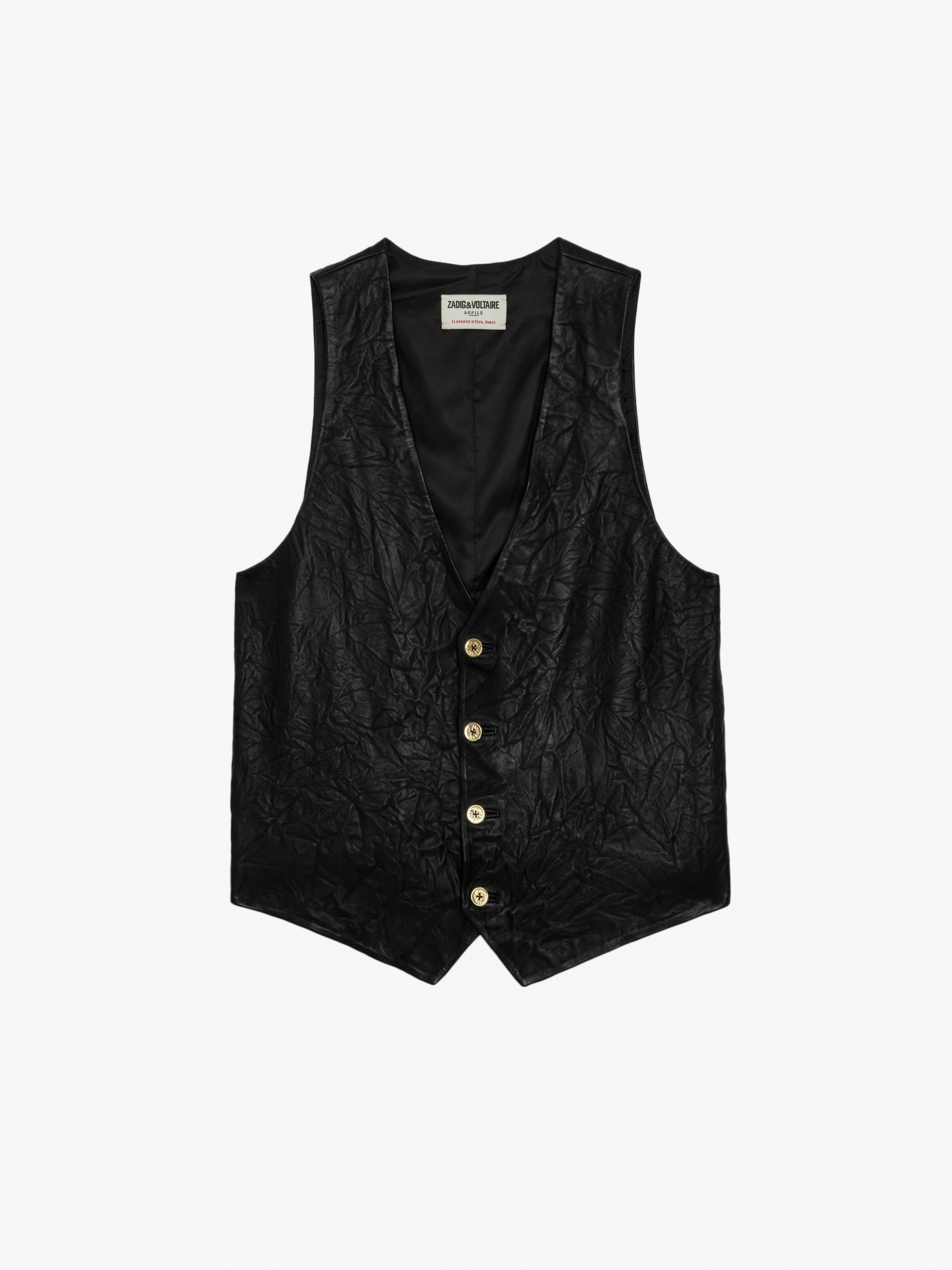 - Women’s black crinkled leather waistcoat