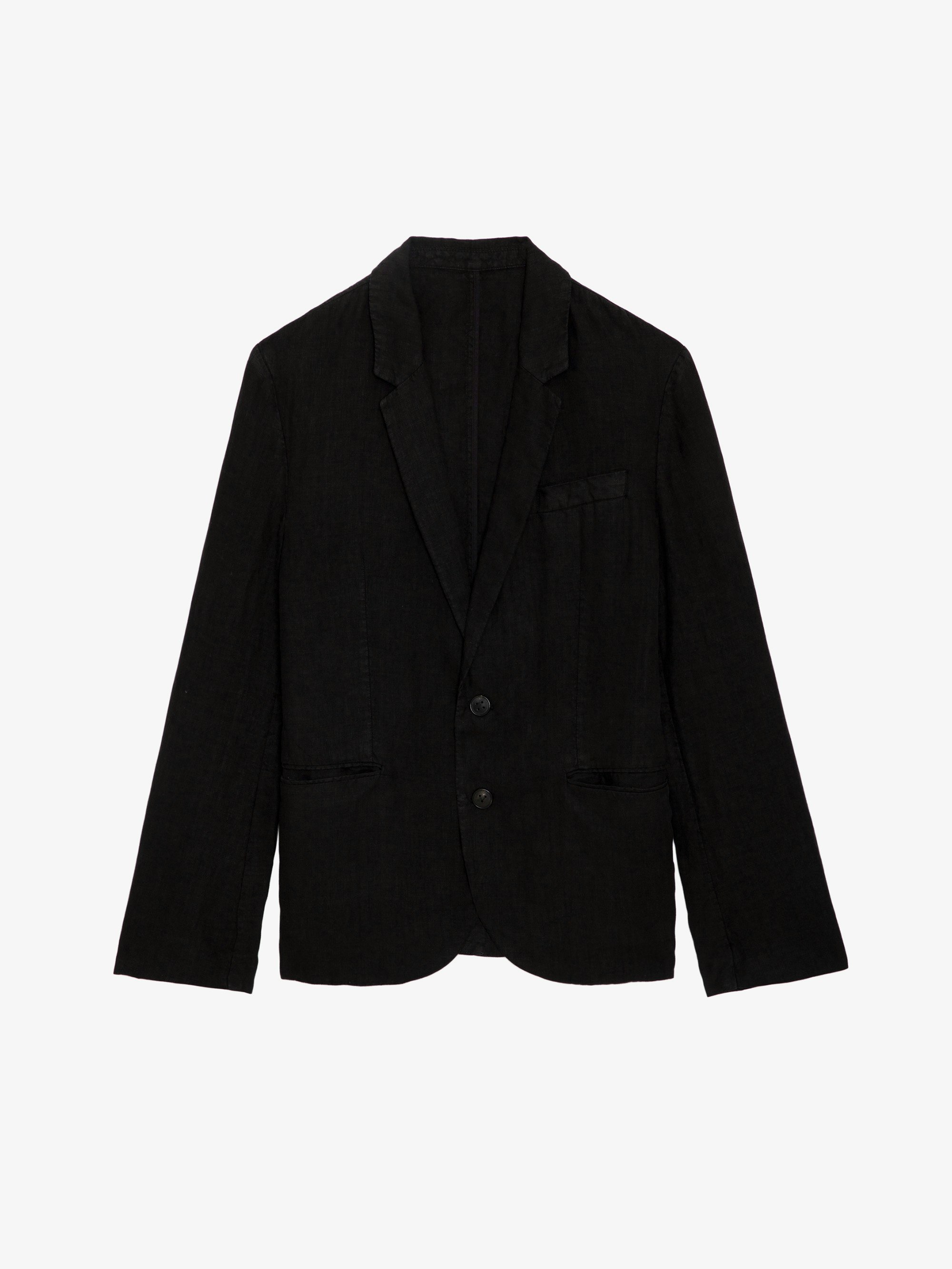 - Men’s black washed linen structured blazer
