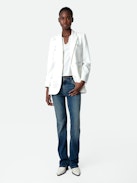 Women's white blazer with customized diamanté details designed by Humberto Cruz.
